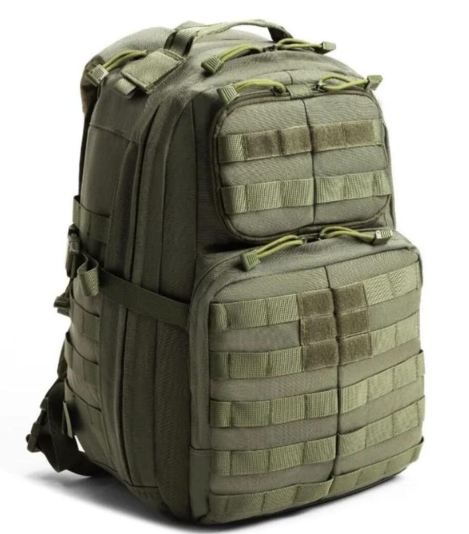 Military-grade 5oL tactical backpack with rigid aluminium internal frame. Field-replaceable components. MOLLE expansion system for solar panels and accessories.